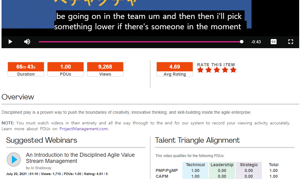 PMI 교육 사이트 : https://www.projectmanagement.com/Webinars/webinarMainOnDemand.cfm
